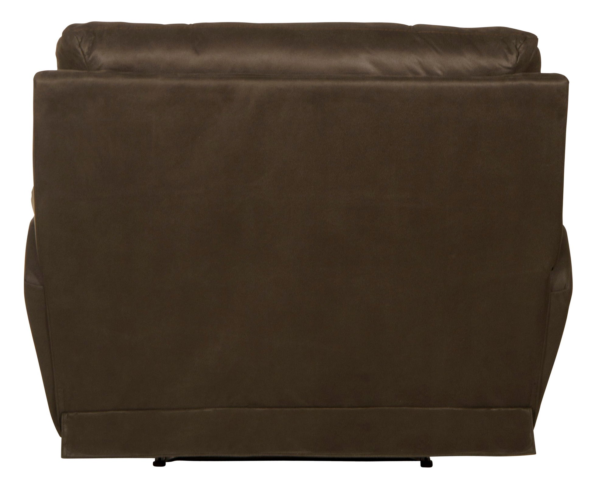 ATLAS is an extra-wide two-seat design covered in a premium faux leather fabric and features a convenient Storage Console with Pewter finished cupholders on the Reclining Loveseat.