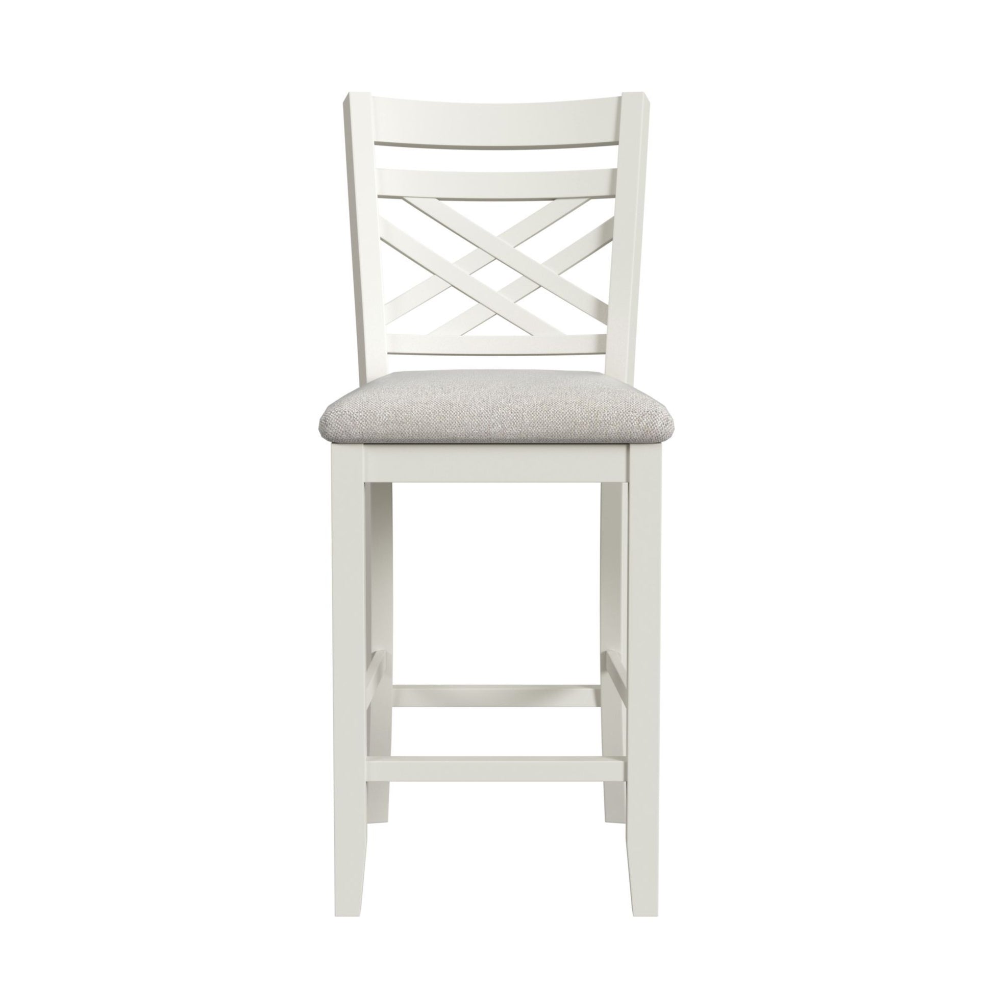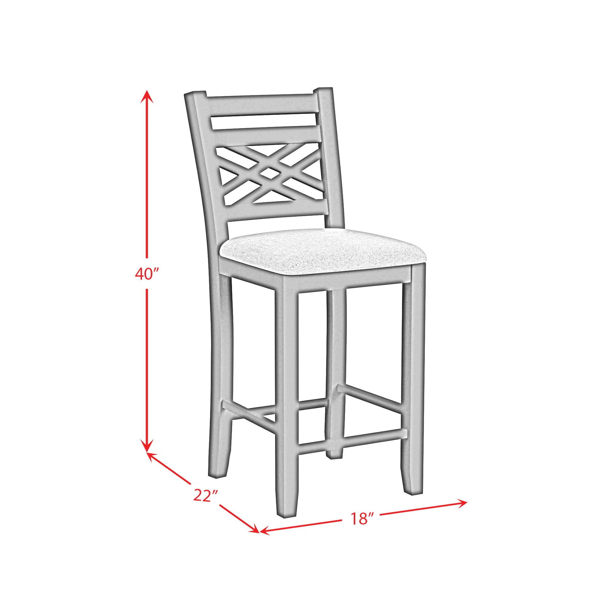 Bring a fresh vibe to your dining space with the charming Brooks 5-Piece Counter Dining Set. The two tone design pairs a warm, wood grain tabletop with a clean off-white base, giving the whole set a bright, airy look that fits easily into kitchens, breakfast nooks, or small apartments. The square table offers plenty of room for meals or morning coffee and even includes a lower shelf for a little extra storage. Matching counter stools feature a stylish X back design and soft upholstered seats that make lingering at the table feel even better. Whether you’re hosting friends or just enjoying a casual dinner at home, this set brings the perfect mix of comfort, style, and everyday functionality.