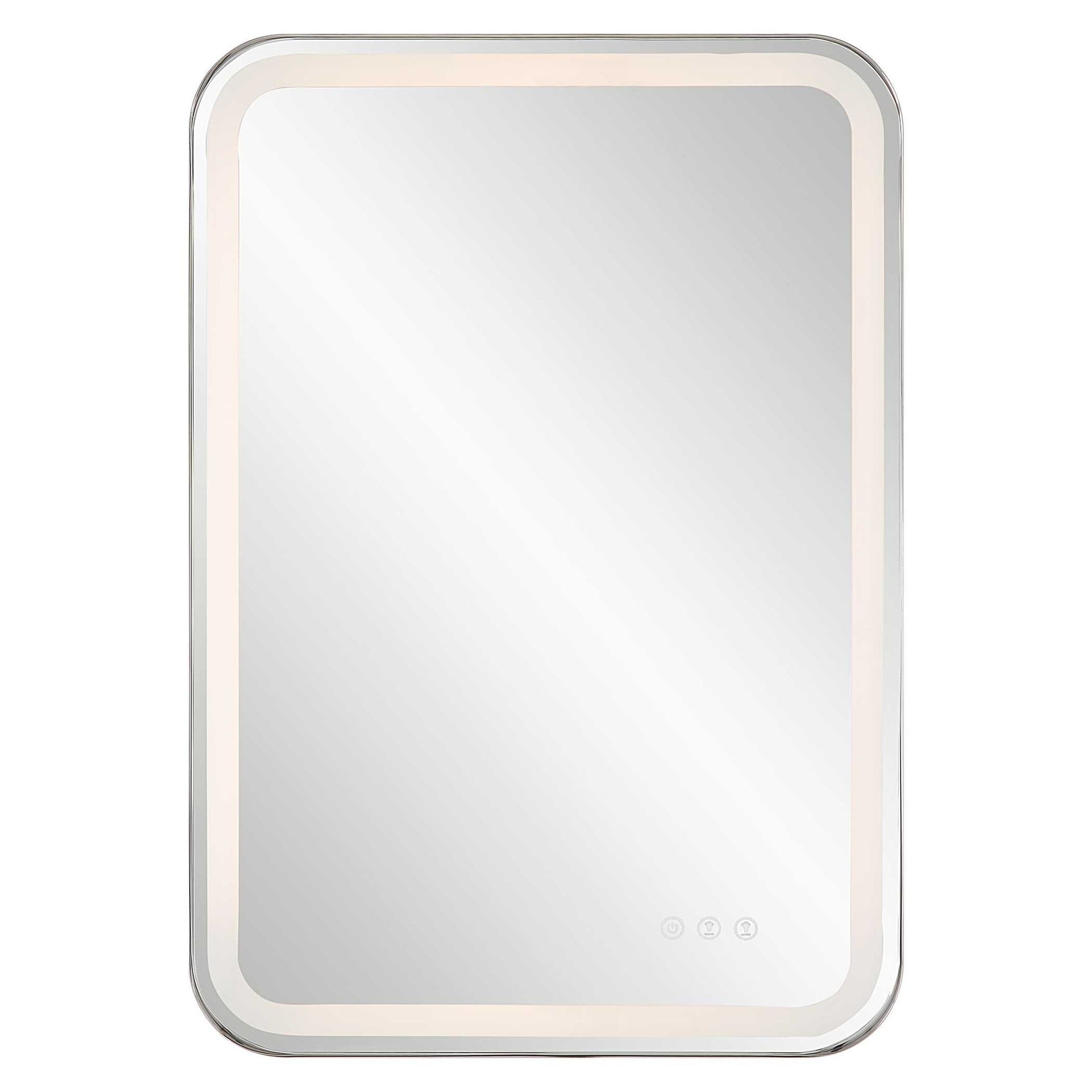 Versatile In Design, This Vanity Mirror Has Integrated LED Lighting That Illuminates Through The Frosted Strip In The Polished Edged Mirror. The Polished Nickel Plated Stainless Steel Frame Is Off Set From The Wall To Allow Ambient Lighting From The Back. Easy To Use Touch Buttons Are Featured On The Bottom Right Of The Mirror With An On Off Function, Touch And Hold Kelvin Control From 2700k To 4000k, And Touch And Hold Brightness Control. LED Lights Rated At 40,000 Hours. Ships With Plug, But Can Be Hardwired Professionally. Touch Screen Icons Continue To Illuminate When Powered Off For Easy Navigation In Dark Settings.