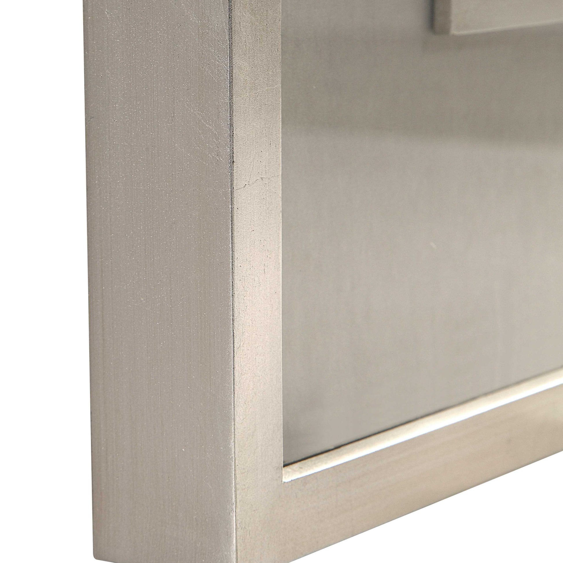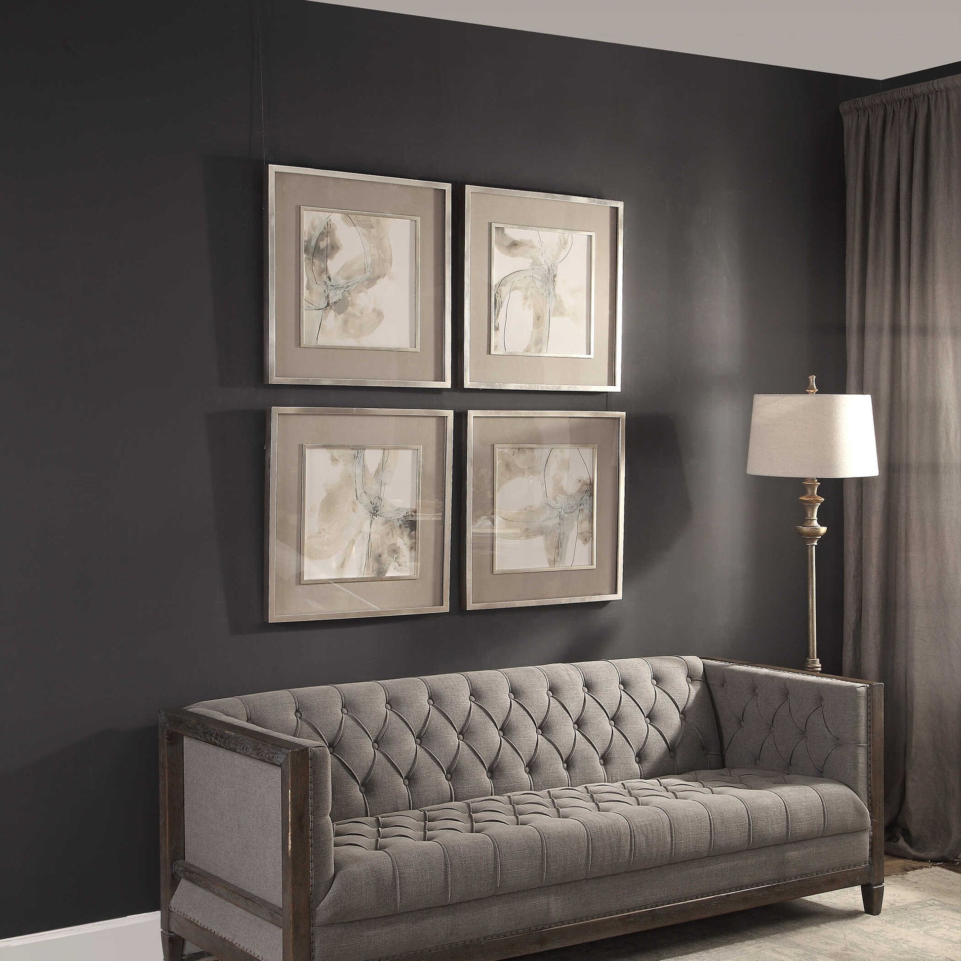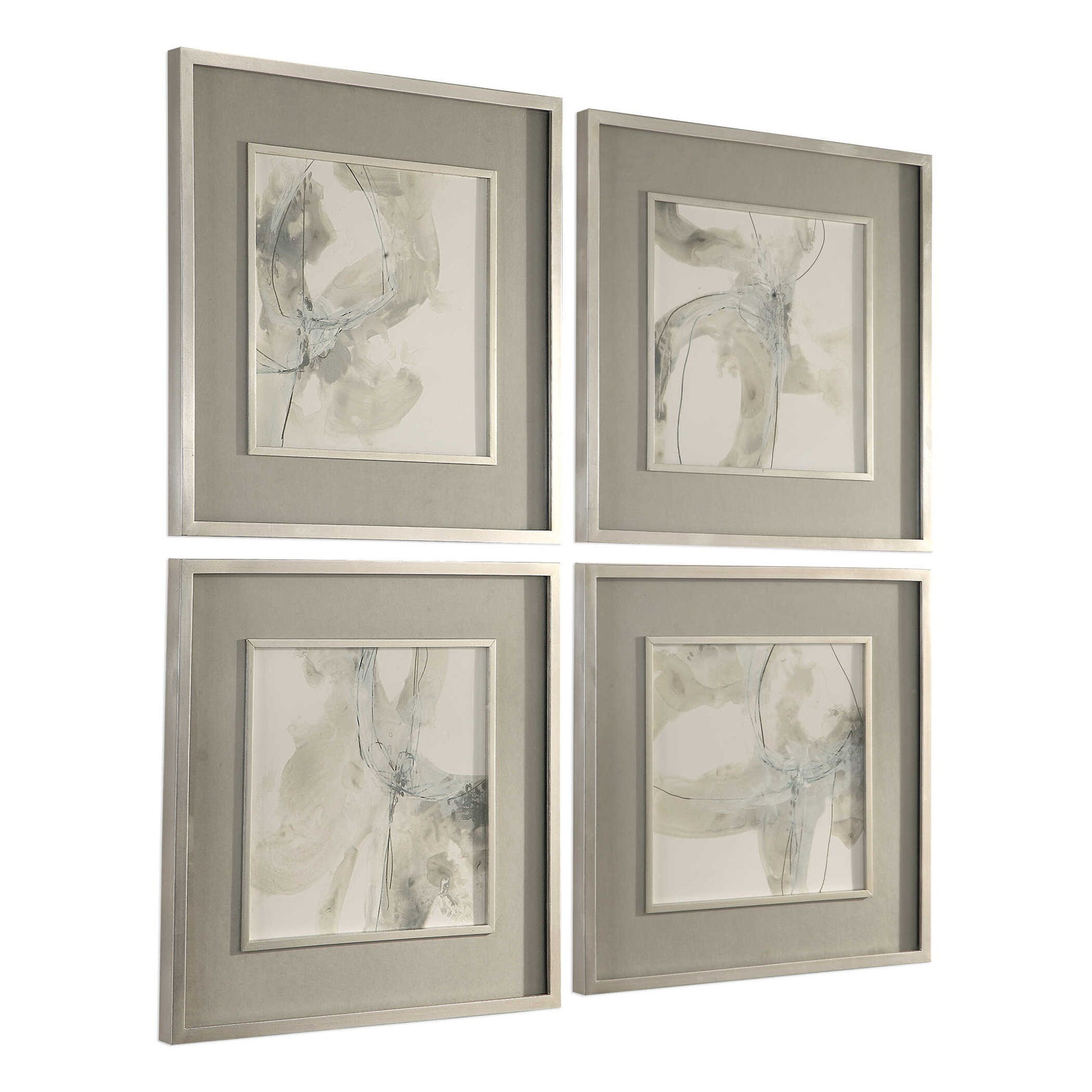 A Unique, Minimalist Design Is Featured In These Abstract Art Prints. Earthy Neutral Tones Of Warm Gray, Charcoal, And Off-white Are Complemented By Warm Gray Mats. Bright Silver Leaf Frames And Fillets Complete These Contemporary Works Of Art. Each Print Is Placed Under Protective Glass. Artwork By June Erica Vess.