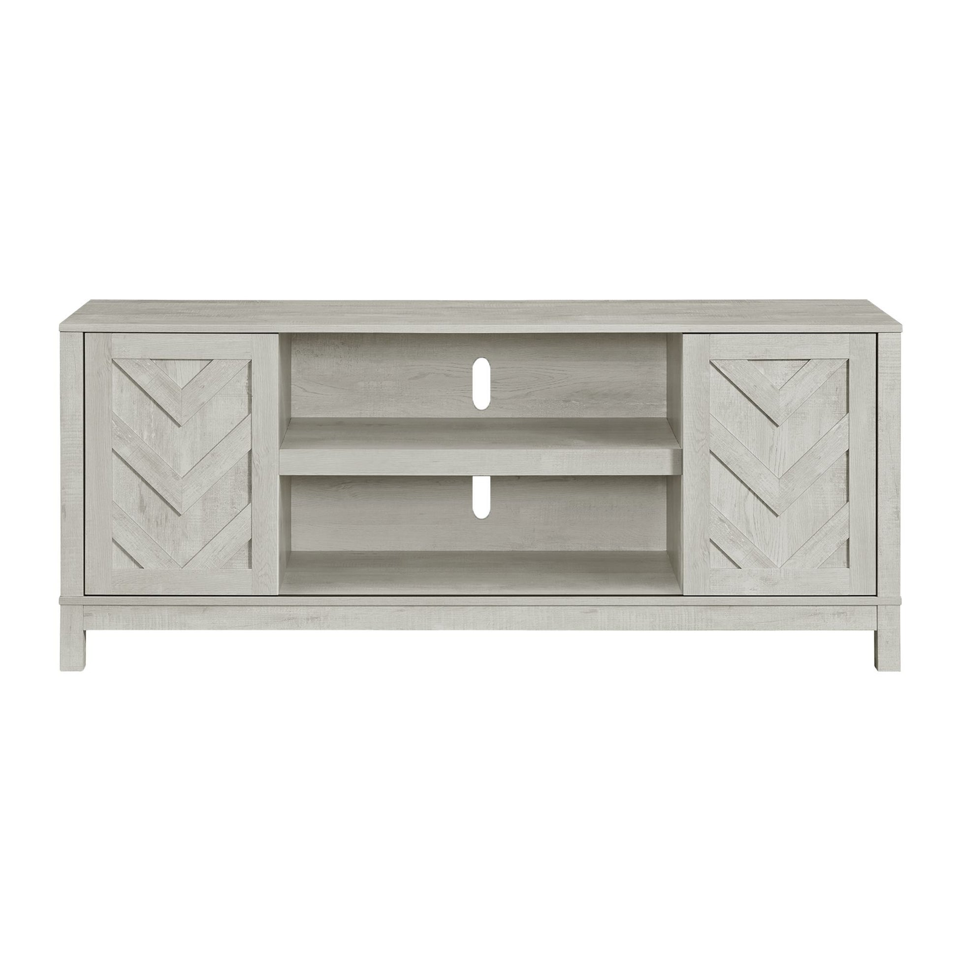 The Eleanor 70” TV Stand with Sliding Doors is a tasteful addition to your entertainment space. Made of durable engineered wood and accented with a dynamic chevron pattern, two cabinet doors slide to reveal storage space with adjustable shelving. Cable holes are conveniently integrated into the back panel to simplify installing electronics and reduce clutter caused by cords, while practical block feet offer a stable foundation. A smooth veneer finish simplifies maintenance while increasing this piece’s longevity, ensuring that the Eleanor 70” TV Stand will withstand the test of time in your living space.