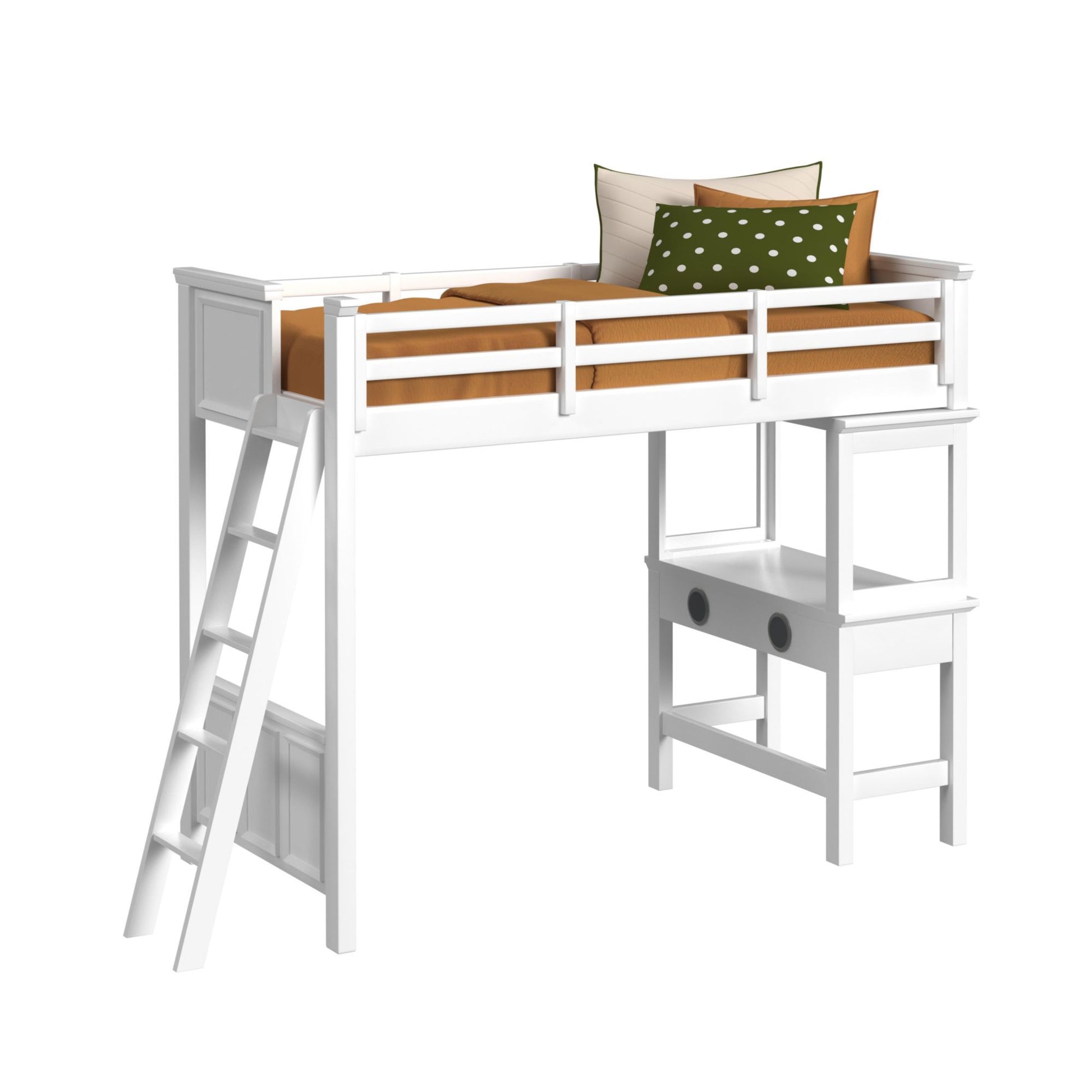 Hampton Kids - Twin Loft With Ladder And Desk With Speaker 3 Piece Bedroom Set - White