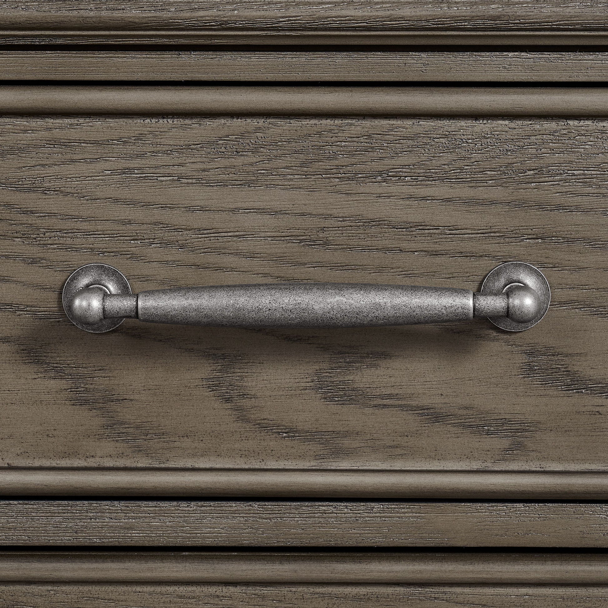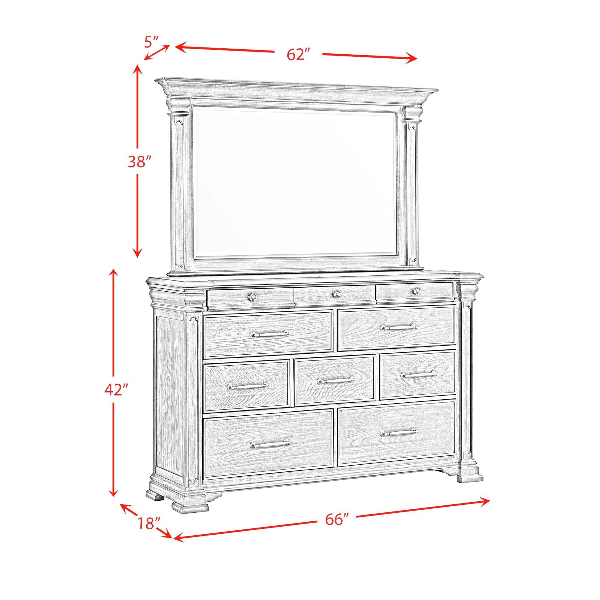 The Kings Court 10-Drawer Dresser is the perfect addition to any bedroom with its elegant design and ample storage space. With 10 drawers, including 3 black felt lined top drawers and 2 cedar veneer bottom drawers, there's plenty of room for all your clothing and accessories. The dresser also features elegant molding and both knob and pull handles for a stylish touch. Upgrade your bedroom furniture with the Kings Court 10-Drawer Dresser in Grey.