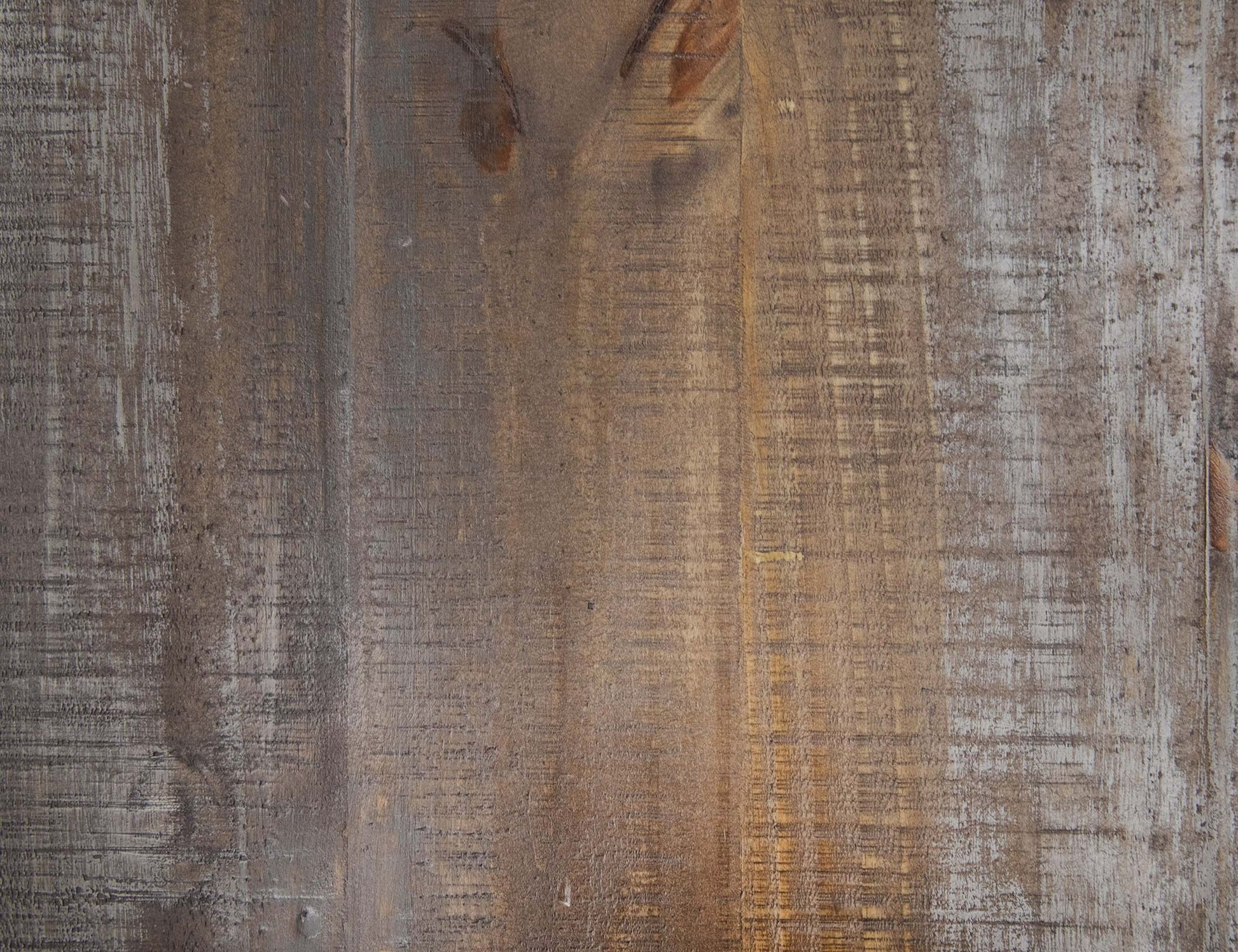 - Multi-step hand-painted water-based acrylic lacquer finish in gray and brown tones for an updated “reclaimed wood” look.