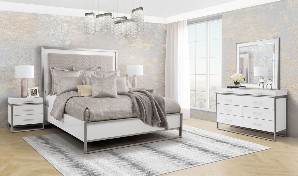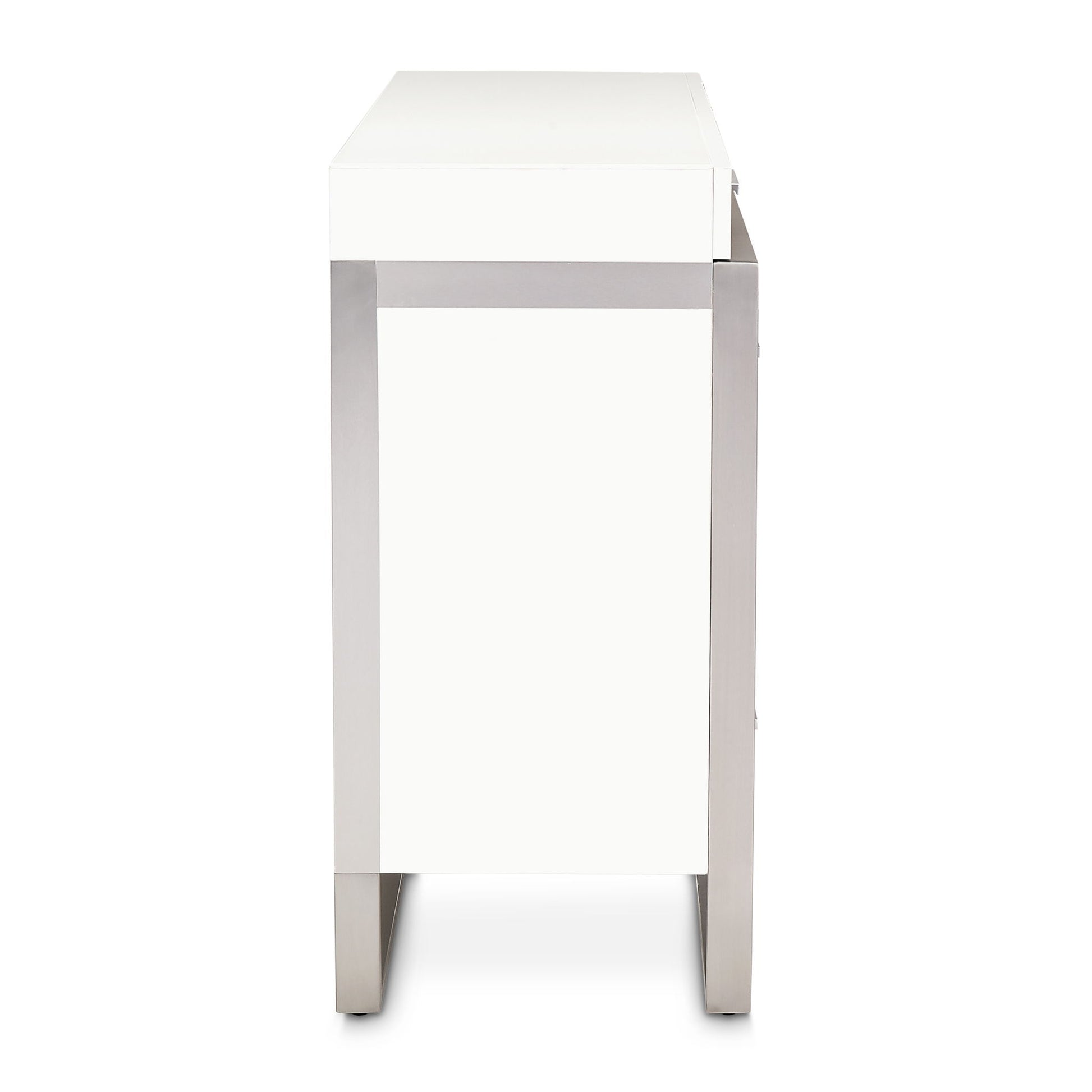 Complete the look! The Marquee Dresser will change the way you look at bedroom design. With tiered top drawers, a beautiful mix of matte and gloss finishes, and brushed stainless steel, this pair is exactly what you want in your contemporary living space.