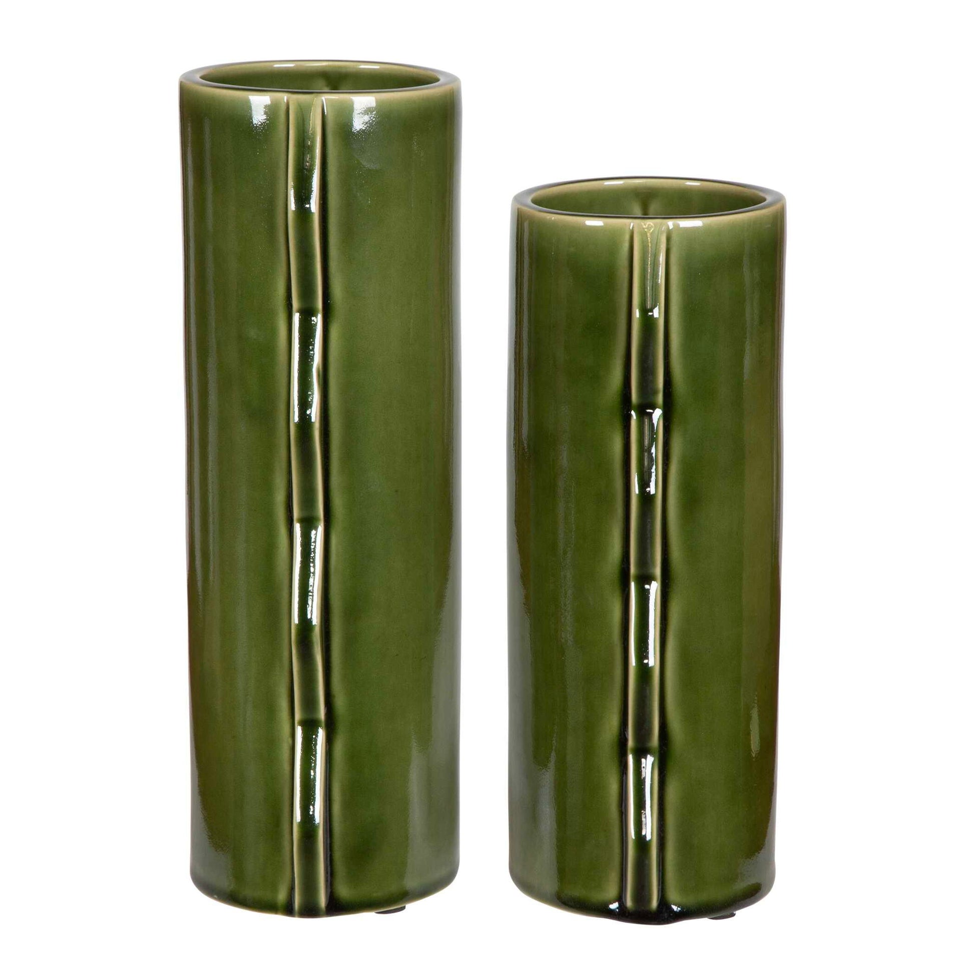 This Dynamic Set Of Two Green Ceramic Vases Showcases A Distinctive Zig-zag Edge Design That Adds A Modern Touch To Your Decor. The Rich Green Finish Creates A Bold Statement, Making Them Perfect For Displaying Fresh Flowers Or As Stunning Decorative Accents. With Their Unique Shape And Vibrant Color, These Vases Effortlessly Elevate Any Space, Whether On A Dining Table, Shelf, Or Mantel. Safe For Outdoor Use, But Protection From Freezing Temperatures Is Recommended. Sizes: S-6x12x5, L-6x14x5