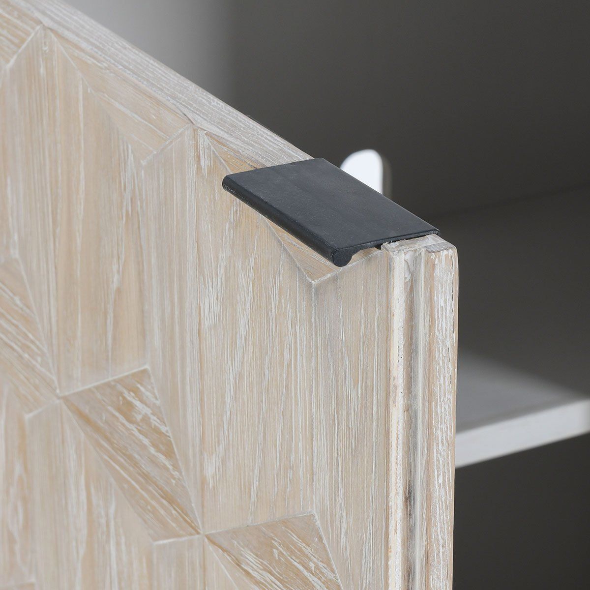 The Mira Cabinet is crafted from beautiful oak wood, featuring a stunning unique door carving design that adds depth and aesthetic appeal. The carvings give this piece an artisanal touch, blending modern craftsmanship with timeless charm. Its natural wood finish enhances the warmth and elegance of your home, making it a versatile addition to any décor.