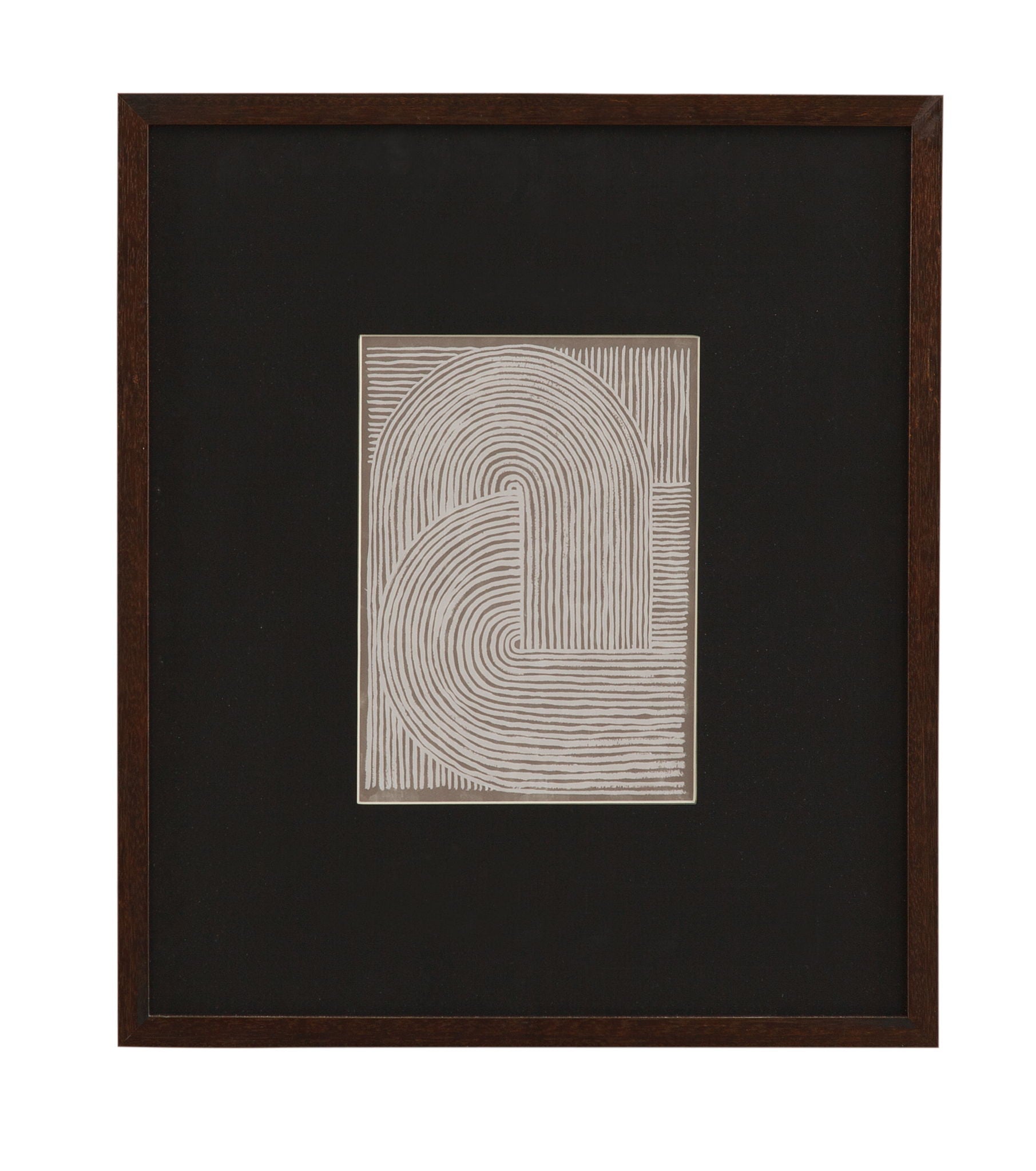 Neutral Strokes IV is a print framed in a 3/4" dark walnut frame with a carbon black matboard.