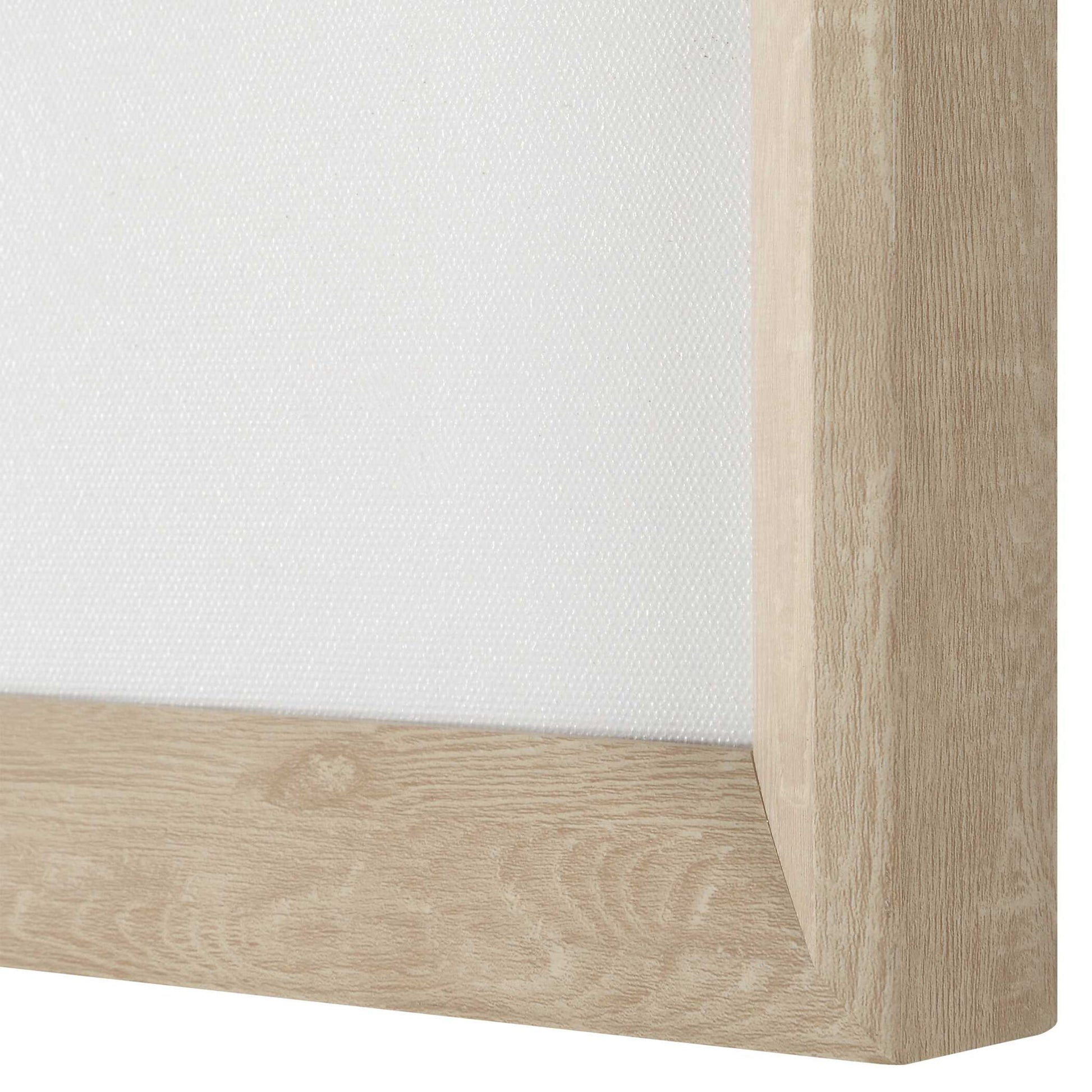 Now & Then Is A Set Of Hand Painted Canvases Featuring An Abstract Composition In Tones Of Gold, Beige, Ivory, And Gray. A Smaller Painted Canvas Is Inset Within A Much Larger Blank Canvas, Creating A Layered Effect. A Natural Pinewood Toned Frame Complements The Artwork's Subdued Palette. Due To The Handcrafted Nature Of This Artwork, Each Piece May Have Subtle Differences.