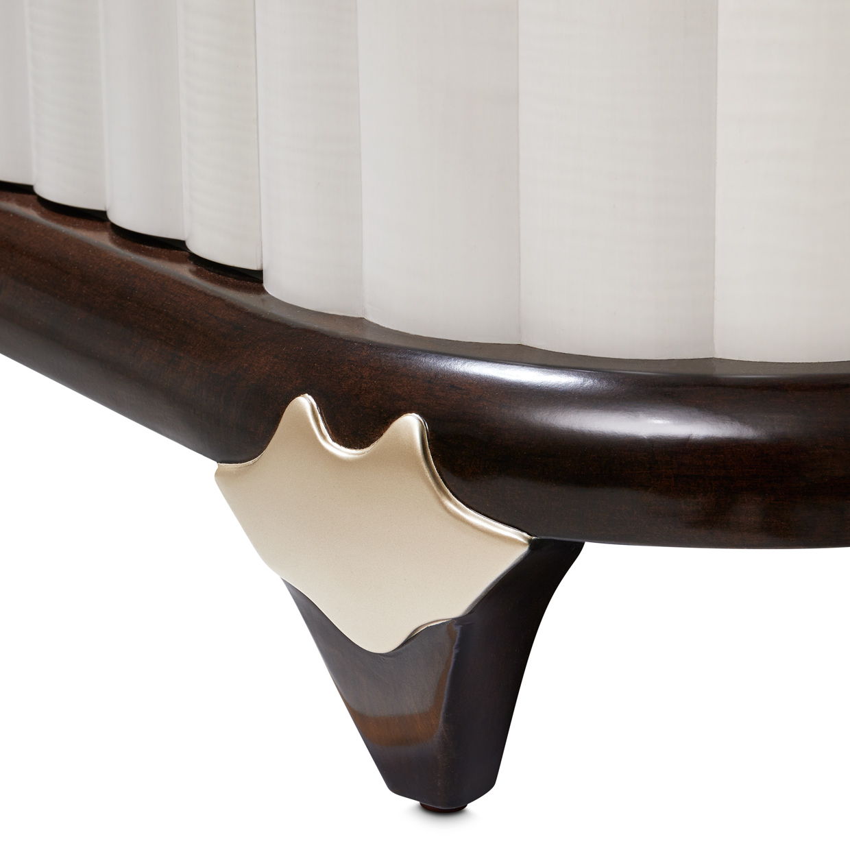 Entertain yourself in luxury! The Paris Chic Media Cabinet features a beautiful scalloped body with glass and wood cabinet doors. Show what you want, and hide what you need! All that's left is classy style.