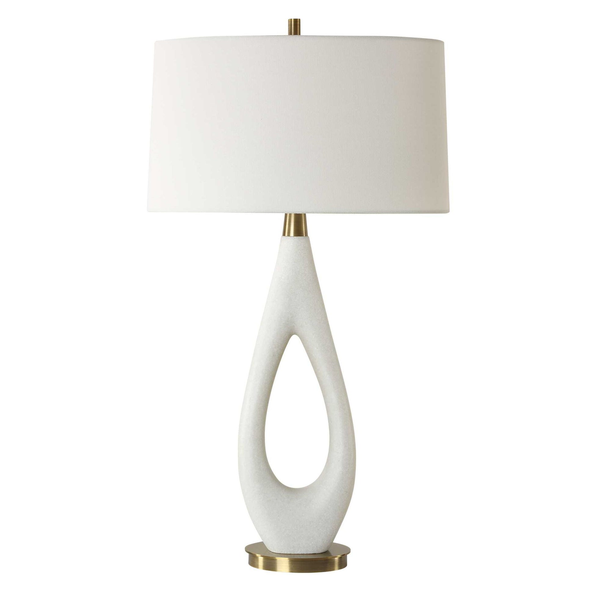 Crafted From Exquisite White Rice Stone, Its Unique Needle Eye Shape Offers A Modern Twist On Classic Forms. Gracefully Supported By A Plated Antique Brass Foot And Matching Hardware. This Lamp Is Not Just A Source Of Light, But A Piece Of Art. A Slightly Tapered Round Shade Made With A Crisp White Linen Fabric Completes The Piece.