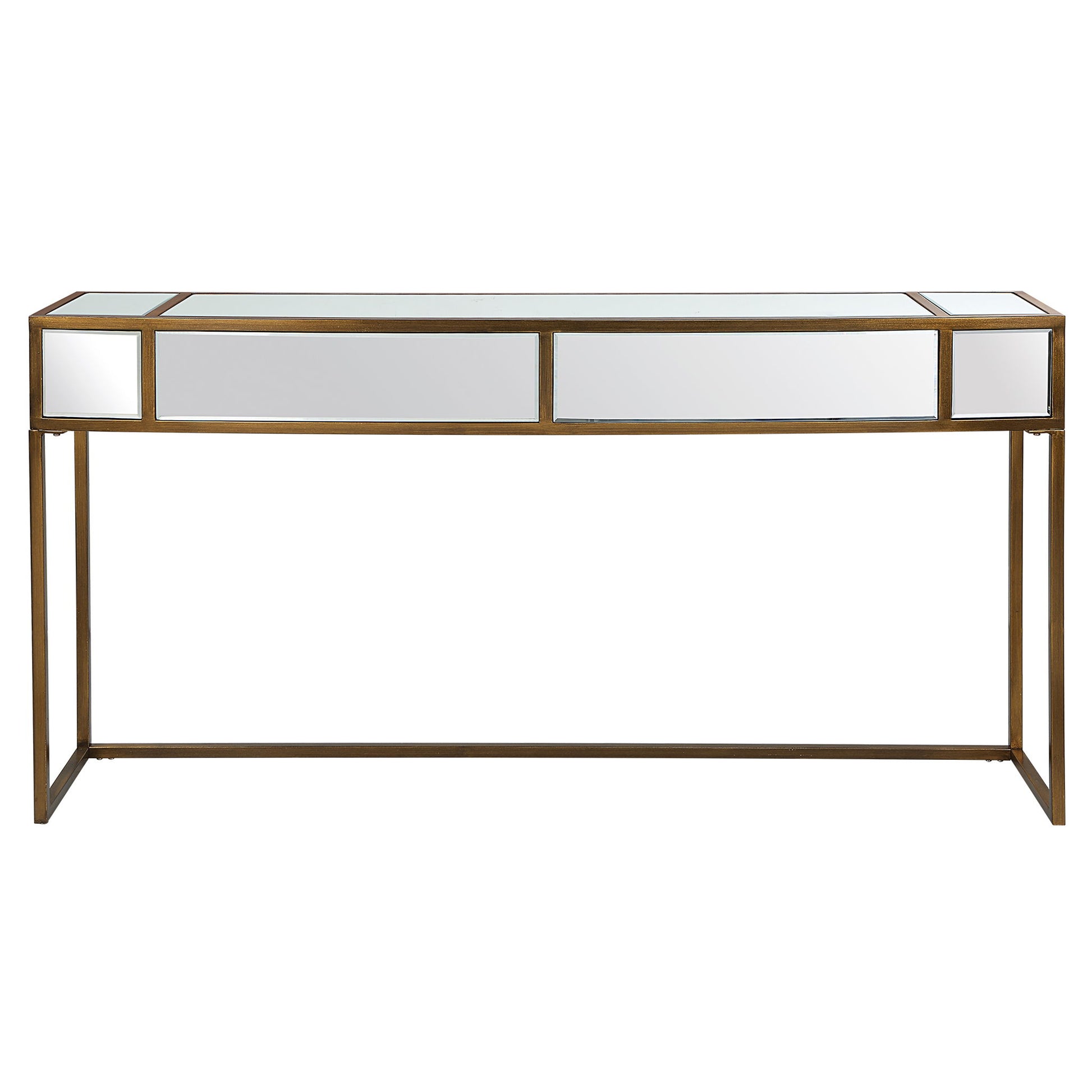 Classic And Sophisticated, The Reflect Console Is Made With A Solid Iron Frame Finished In A Brushed Aged Gold And Mirrored Accents.