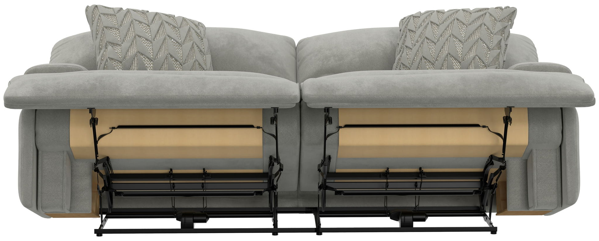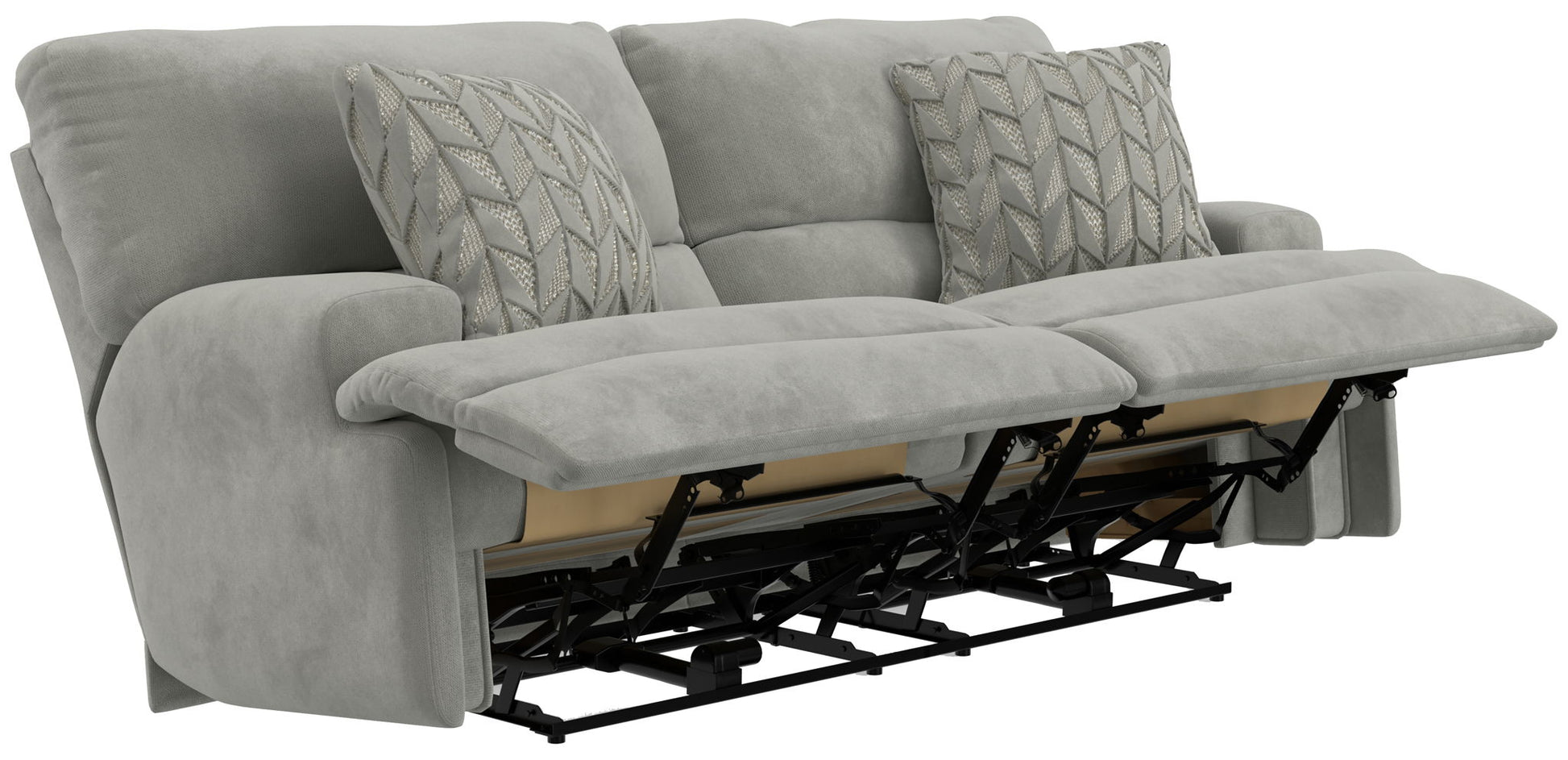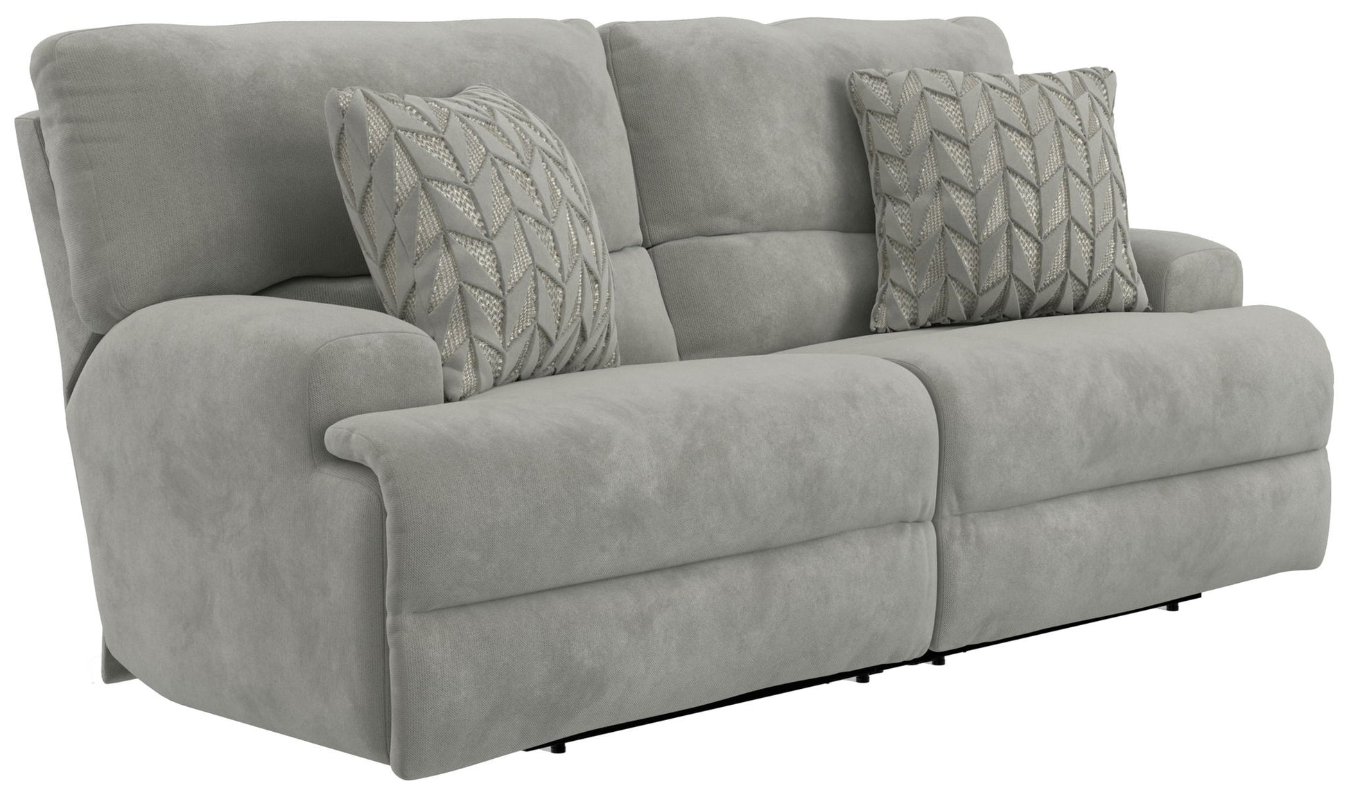 Renaldo - Power Lay Flat Sofa With Zero Gravity - Stone. Product . Incredibly Soft & Durable Polyester Fabric. Extra-Wide 2-seat T-Front Design. Decorative Accent Pillow. Lay Flat Reclining. Comfort Coil Seating featuring Comfor-Gel. Steel Seat Box.