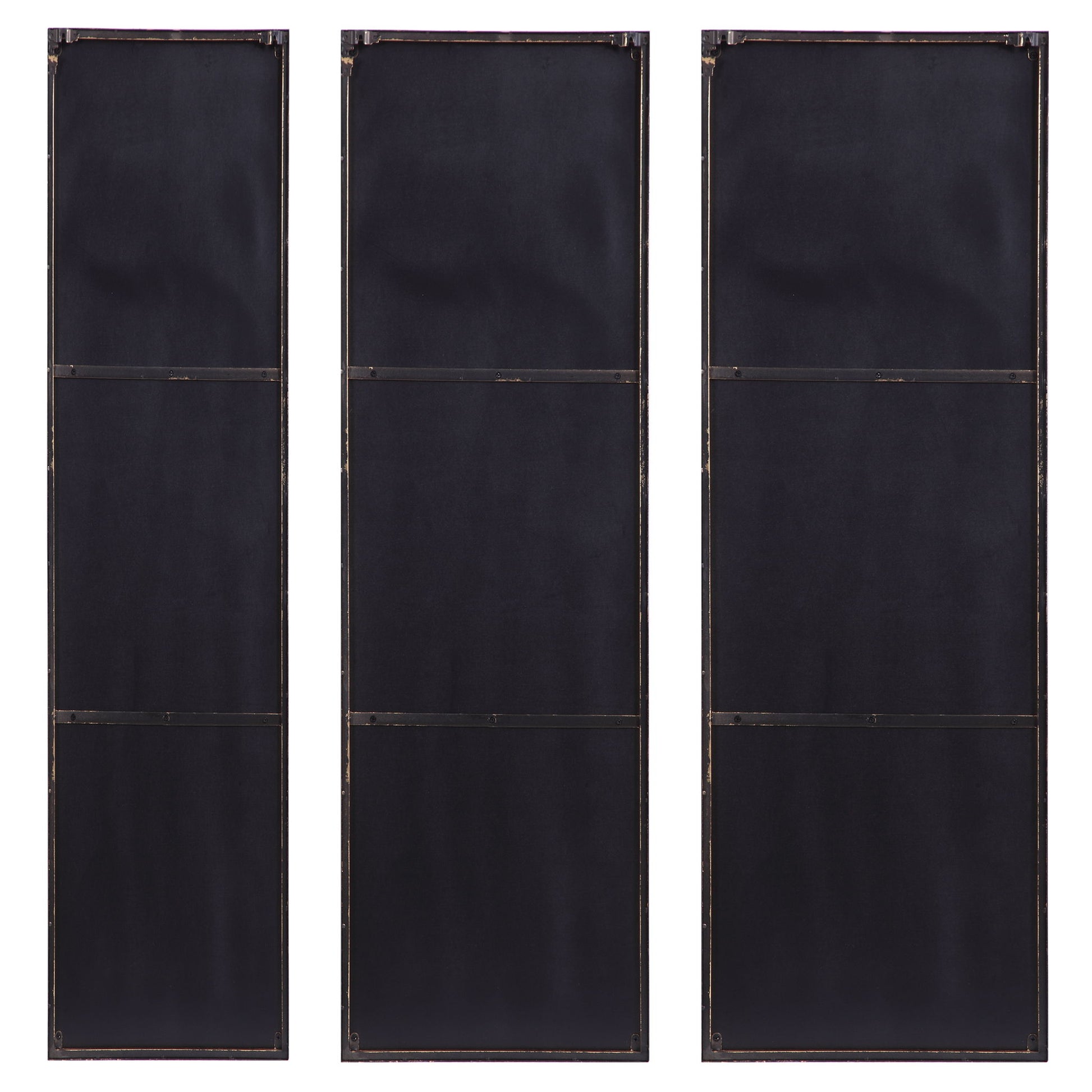 This Set Of Three Mirrors Showcase Simple, Clean Lines With Gold Leaf Finished Metal Profile Frames. Each Mirror May Be Hung Horizontal Or Vertical, Allowing For Multiple Modern Display Options. Sizes: S-8"x47", M-12"x47", L-16"x47"