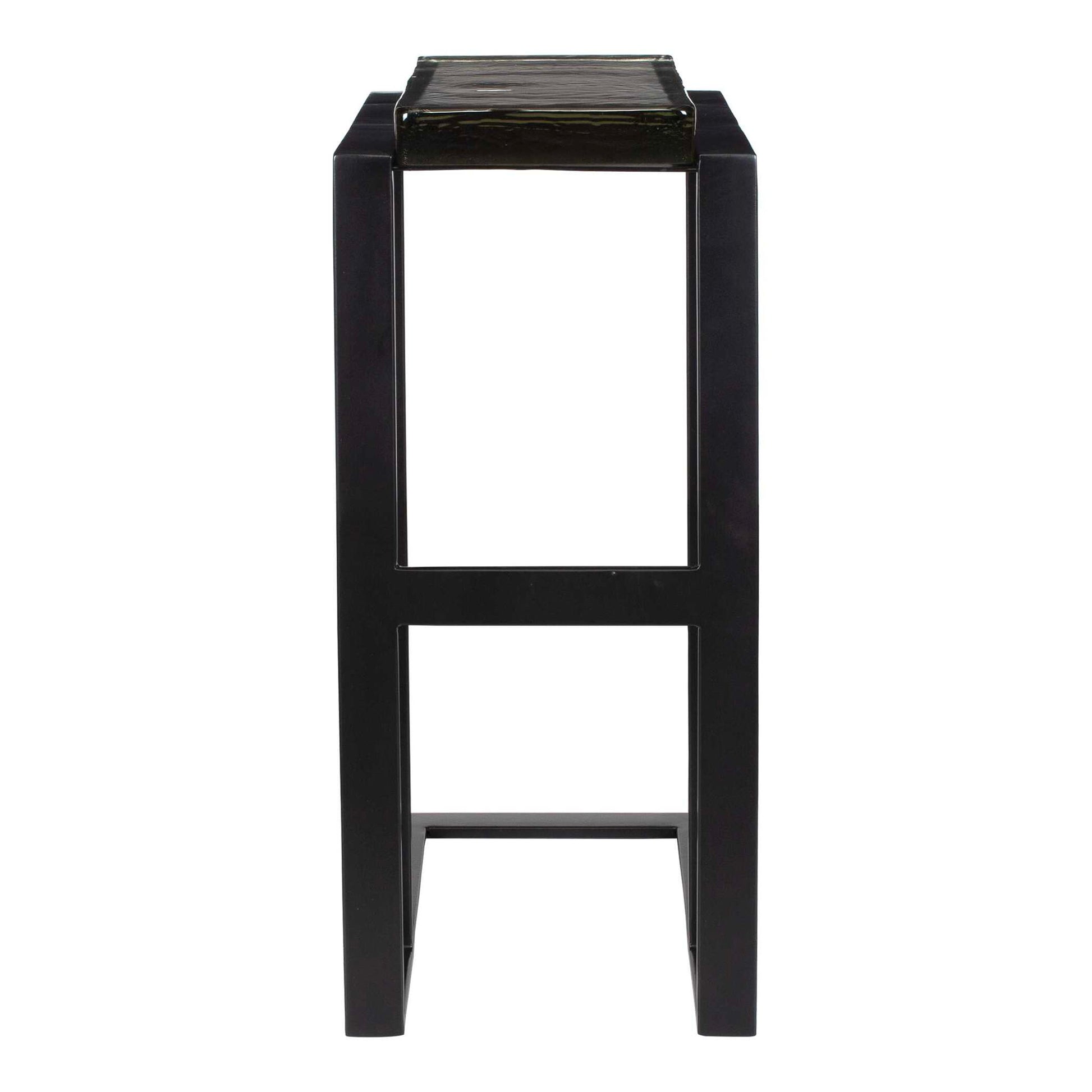 Designed For Both Style And Functionality, This Pull-up Style Table Features A Sleek Black Iron Frame And A Thick, Cast Glass Top.