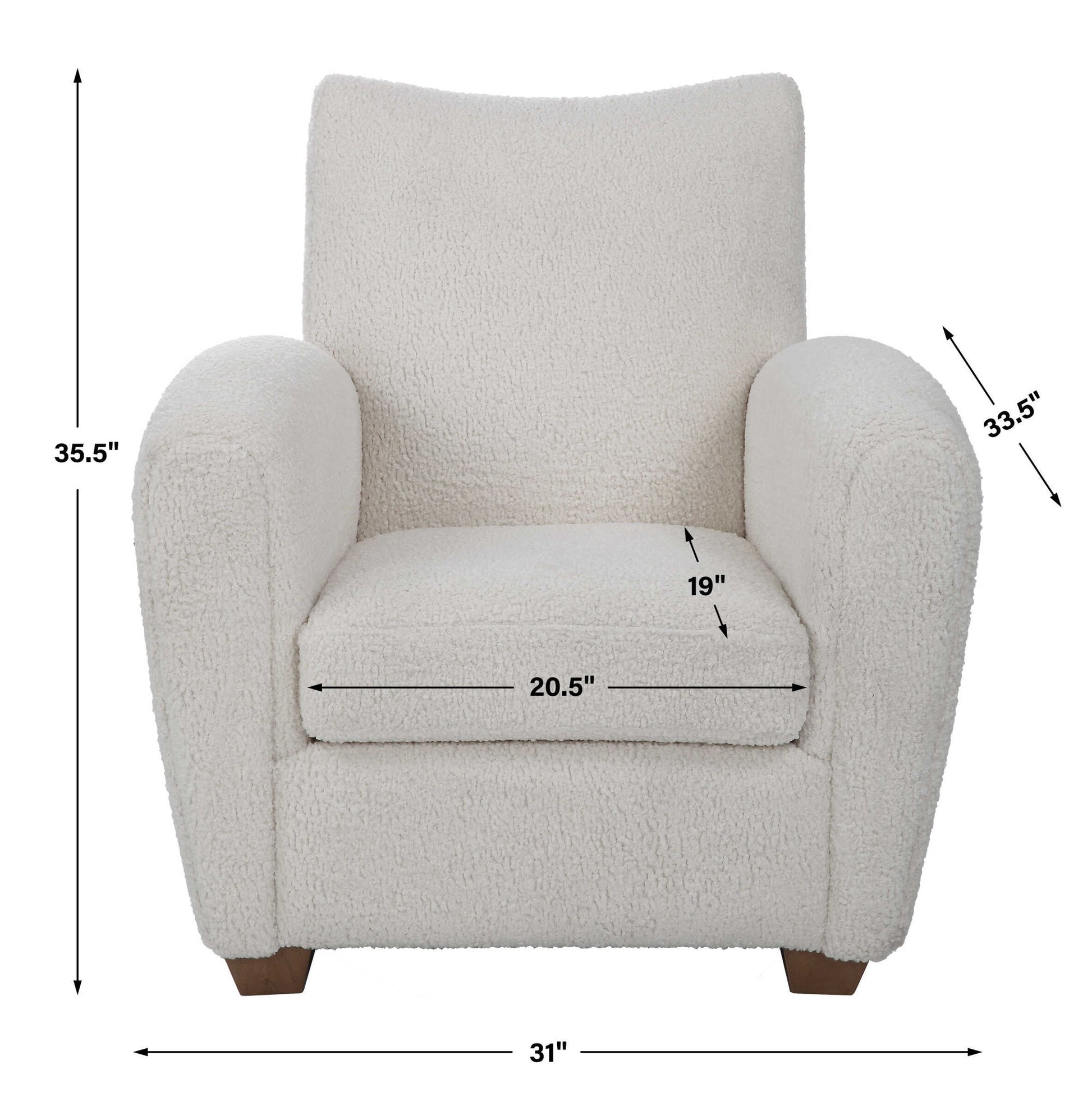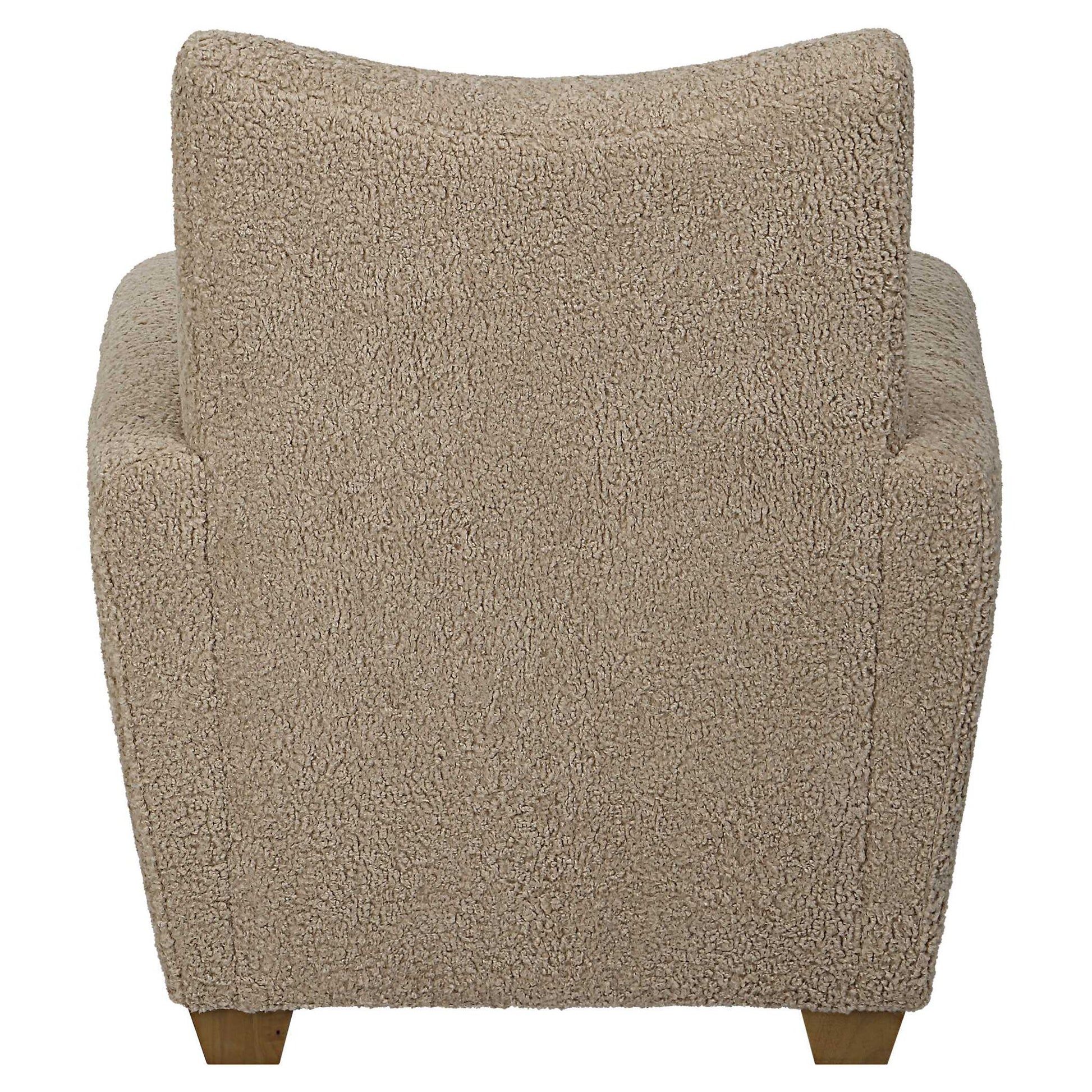 With Its Curved Track Arms And Supportive Back, This Cozy Accent Chair Is The Perfect Balance Of Comfort And Style. Fully Upholstered In A Soft Toned Faux Shearling And Accented By Stained Wooden Feet. Seat Height Is 18".