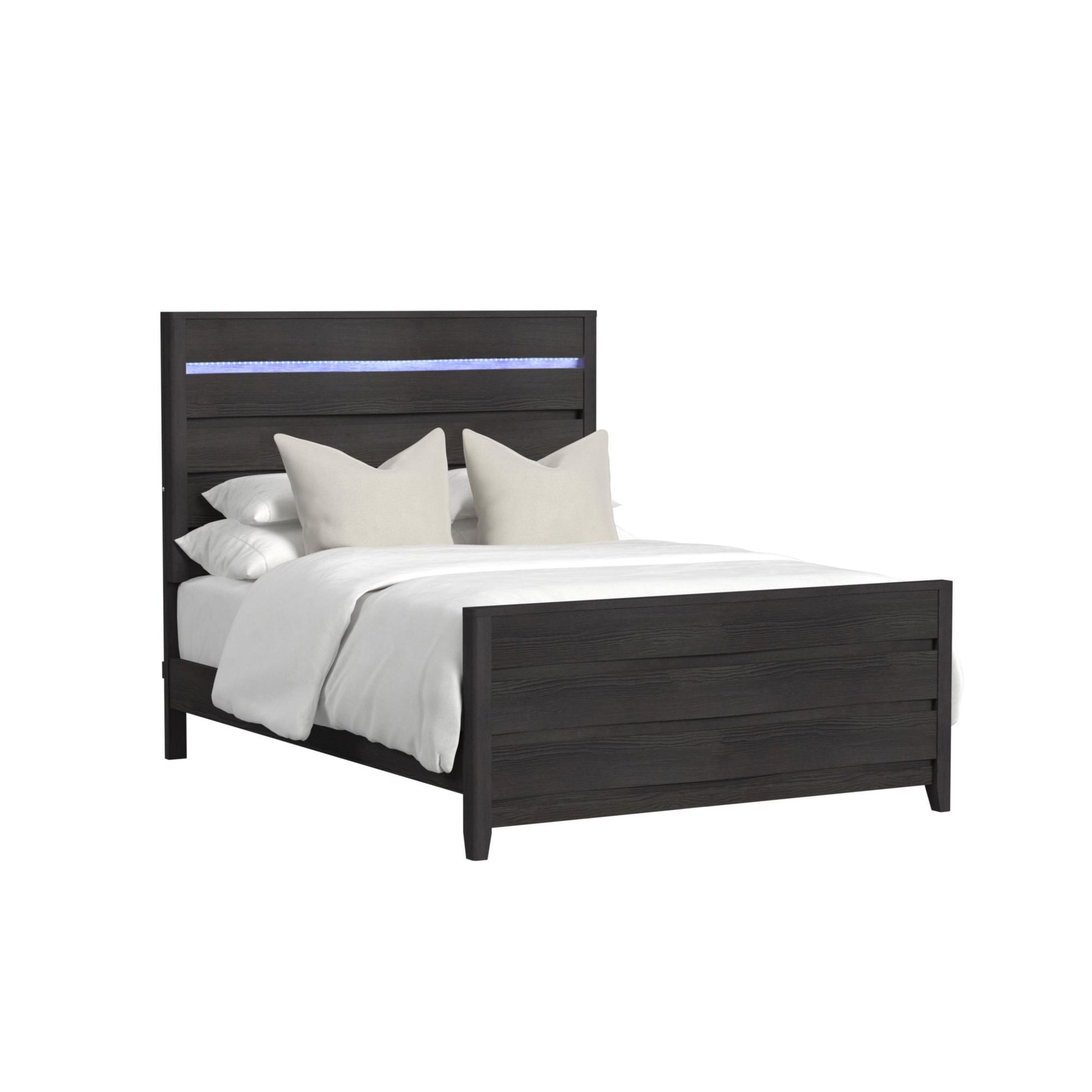 The Tobias Bed with LED is a sleek and modern addition to your home. Designed with gently sloping horizontal slats that create a uniquely rhythmic balance, this piece adds a sense of refinement to any space it occupies. Conveniently integrated LED lighting in the headboard adds modern flair, while slightly beveled legs provide a firm and reliable foundation. For a piece that is sleek and stylish, the Tobias Bed with LED delivers in quality and design.