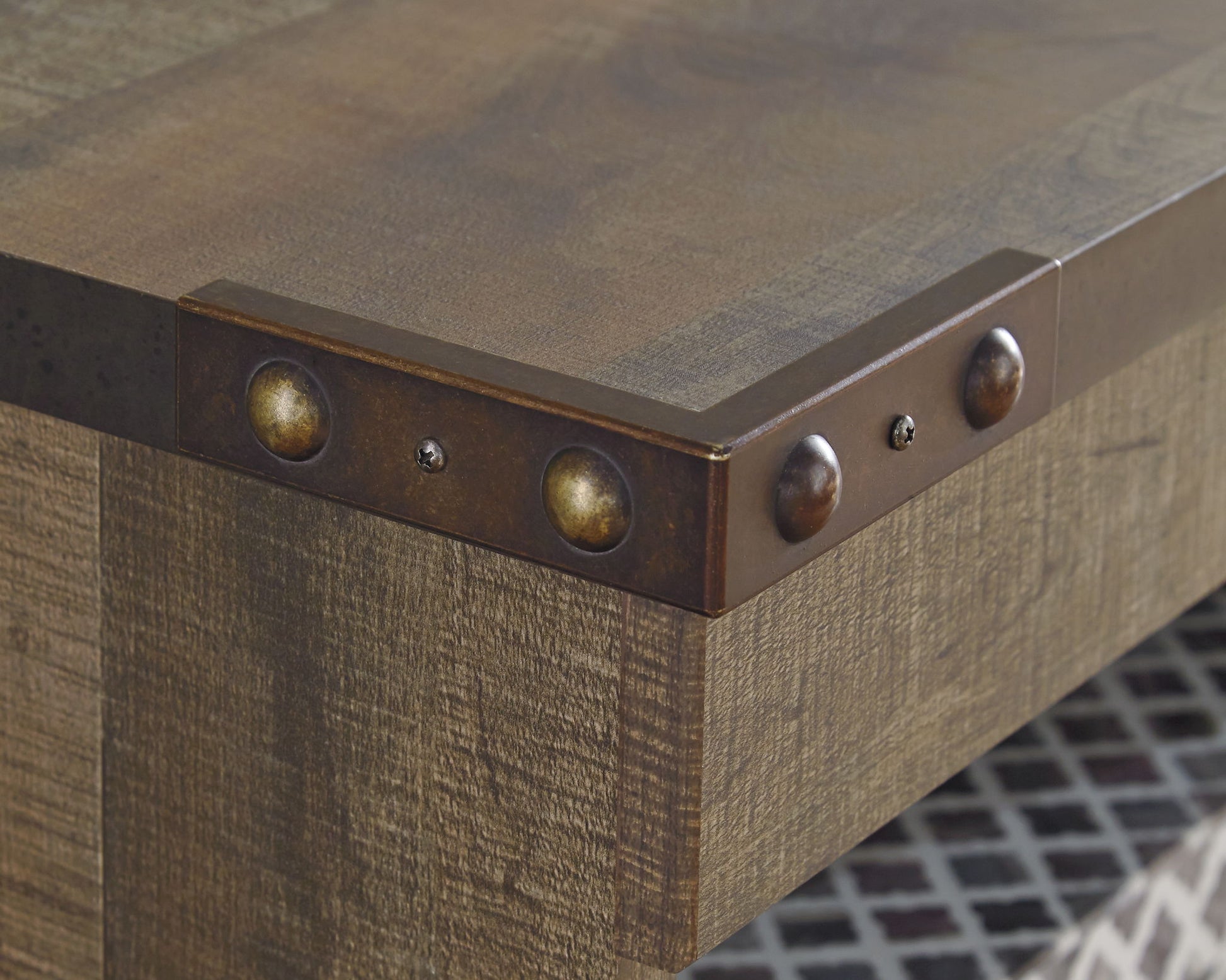 Entertain a rugged yet refined sense of style with this TV stand with fireplace insert. Rustic finish and plank-style details pay homage to reclaimed barn wood, while metal banding with nailhead accents infuses a touch of industrial cool. Ultra clean lines ensure a look that can go from the country to the city and feel equally at home. What really turns up the heat: an electric infrared fireplace insert with faux firebrick surround that operates with or without infrared heat and includes a multi flame feature, 7-level temperature setting, five brightness levels and LED glowing embers effect.