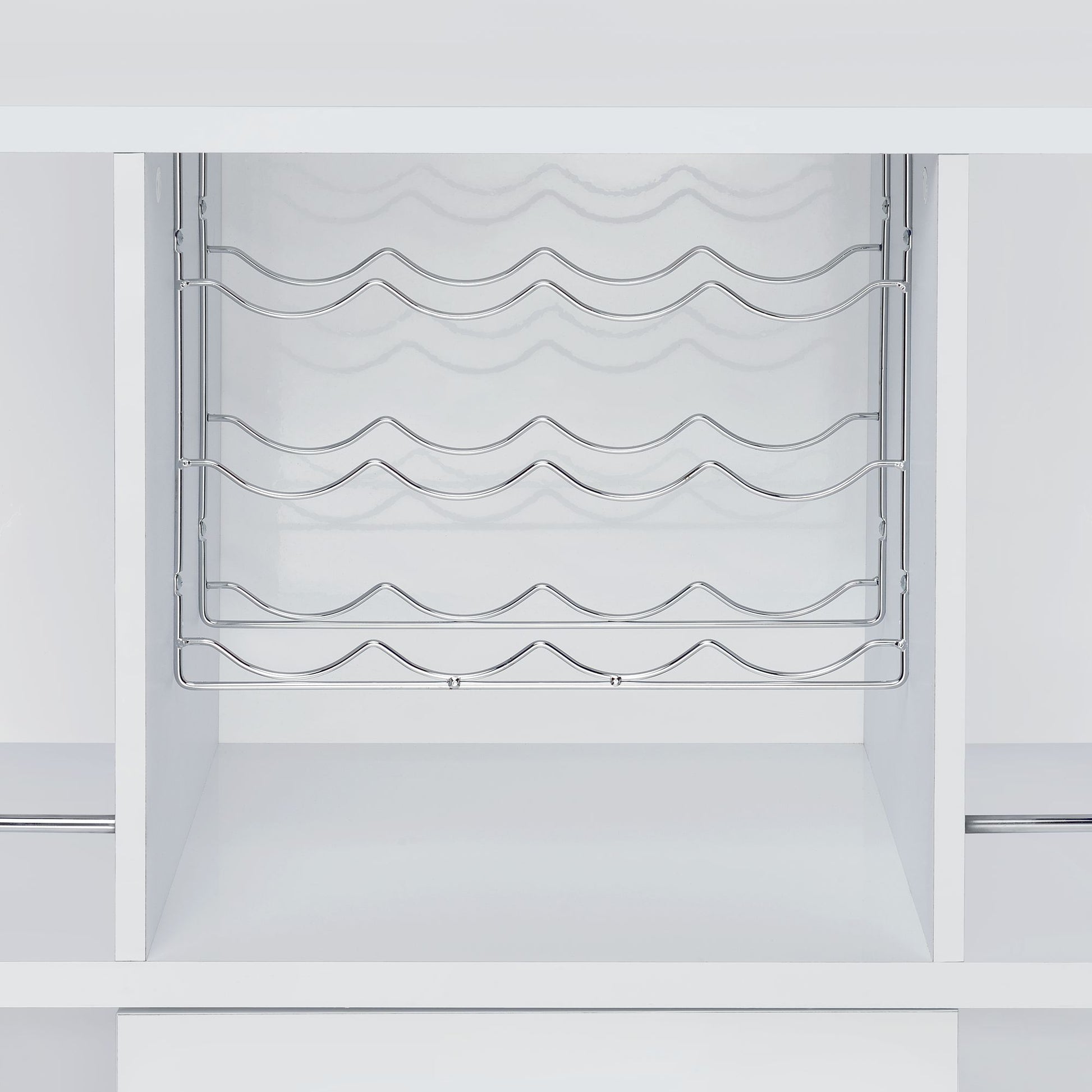 The Wendolyn Wine Cabinet accents your home with its glossy white finish and multifunctional design. COB RGB LED lighting adds modern flair, enhancing this piece’s visual appeal. Practical, user-friendly design is noted in features like open shelving, bottle racks, and wine glass holders, which all provide ample storage and display space. A mirror of durable tempered glass furthers this piece’s appeal, perfectly complementing the silver metal hardware. For a modern and sleek accent to your dining area, the Wendolyn Wine Cabinet delivers in function and style.