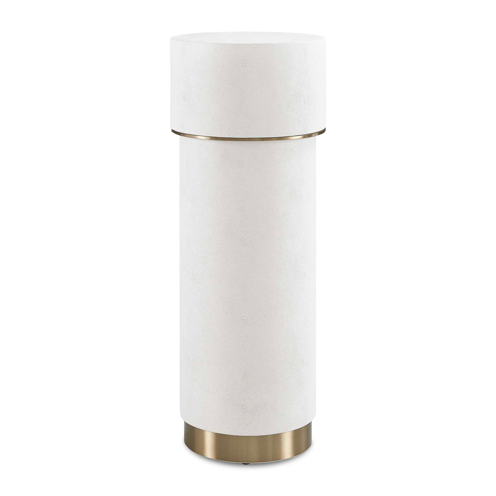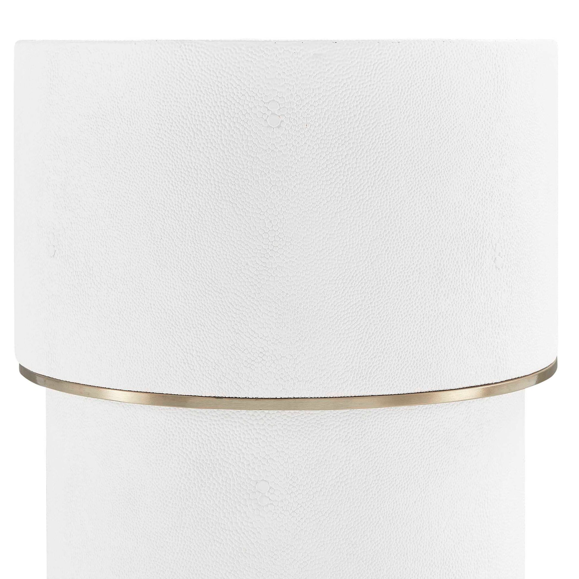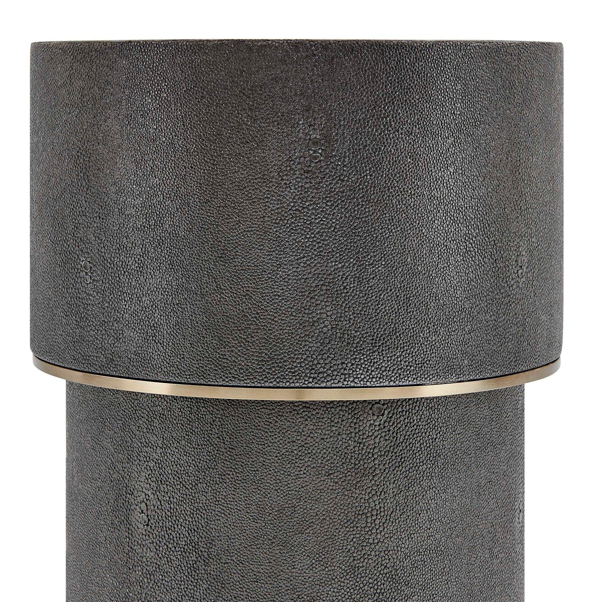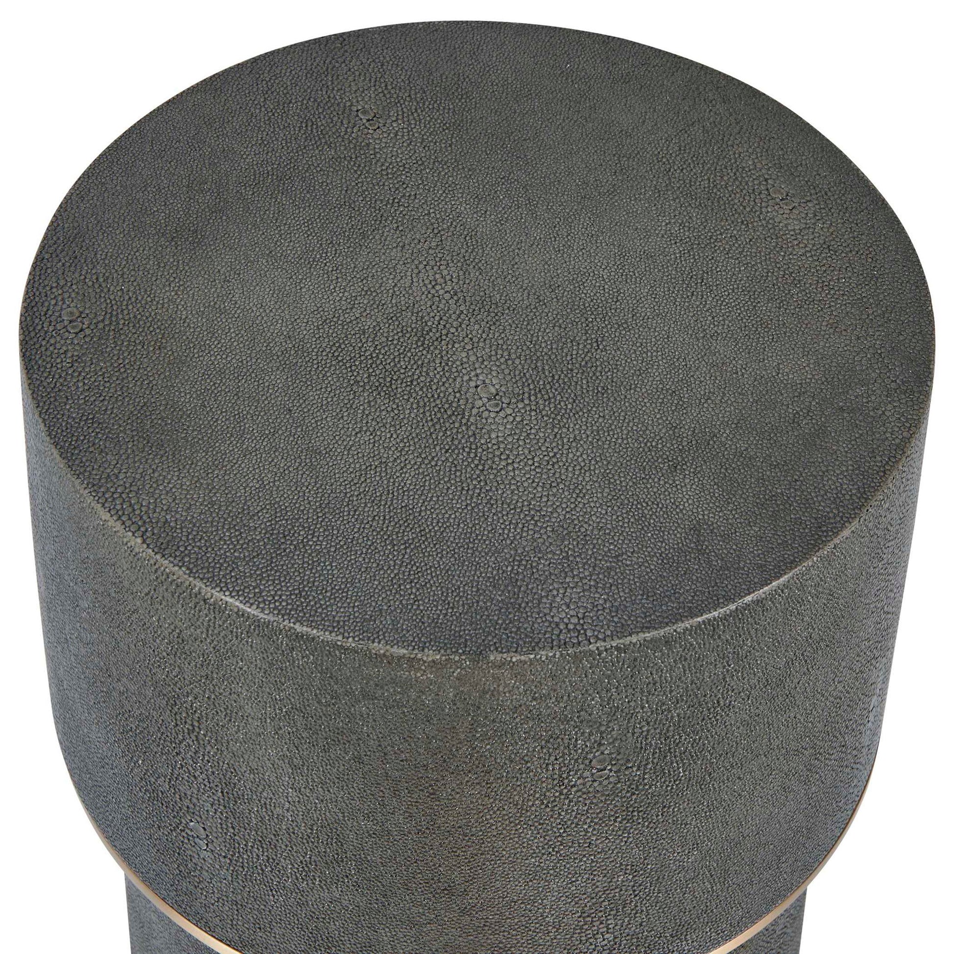 Pedestal Style Drink Table Covered In An Elegant Faux Shagreen And Brushed Brass Finished Accents.