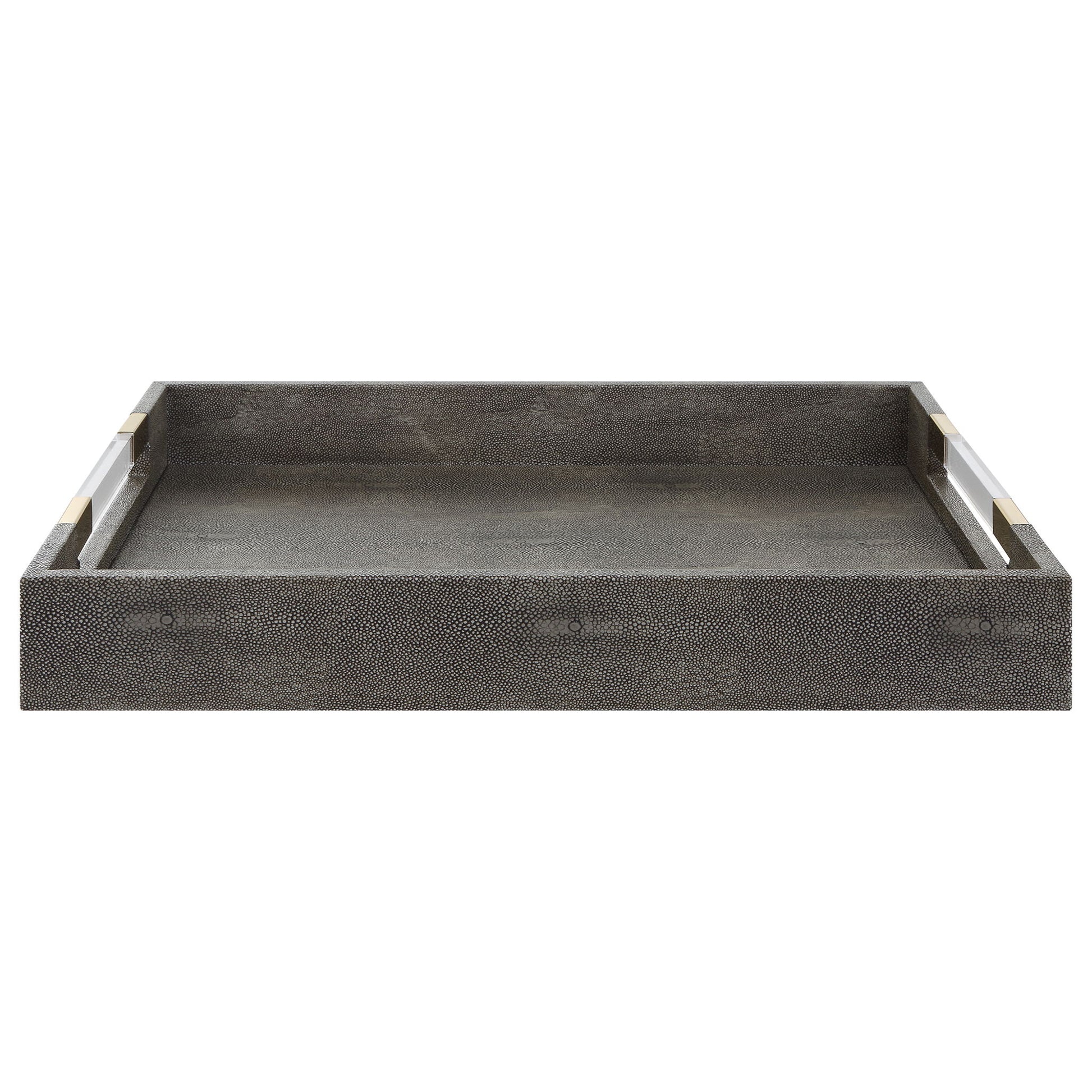 Tray Is Covered In An Elegant Faux Shagreen With Clear Acrylic Handles And Aged Gold Accents.