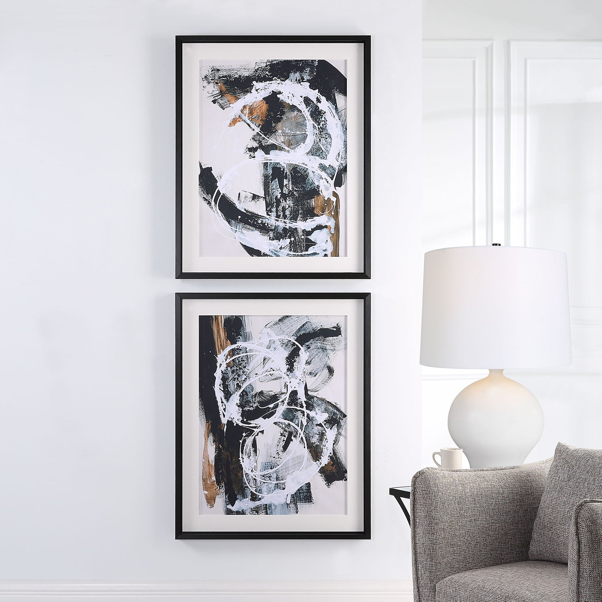These Contemporary Compositions Feature A Unique Combination Of Warm Golden Ochre, Deep Charcoal, And White Tones. Accented By Satin Black Pine Wood Frames And A Natural Linen Wrapped Mat. May Be Hung Horizontal Or Vertical. Printed On Paper With Special Matte Finish. Artwork By Joyce Combs.